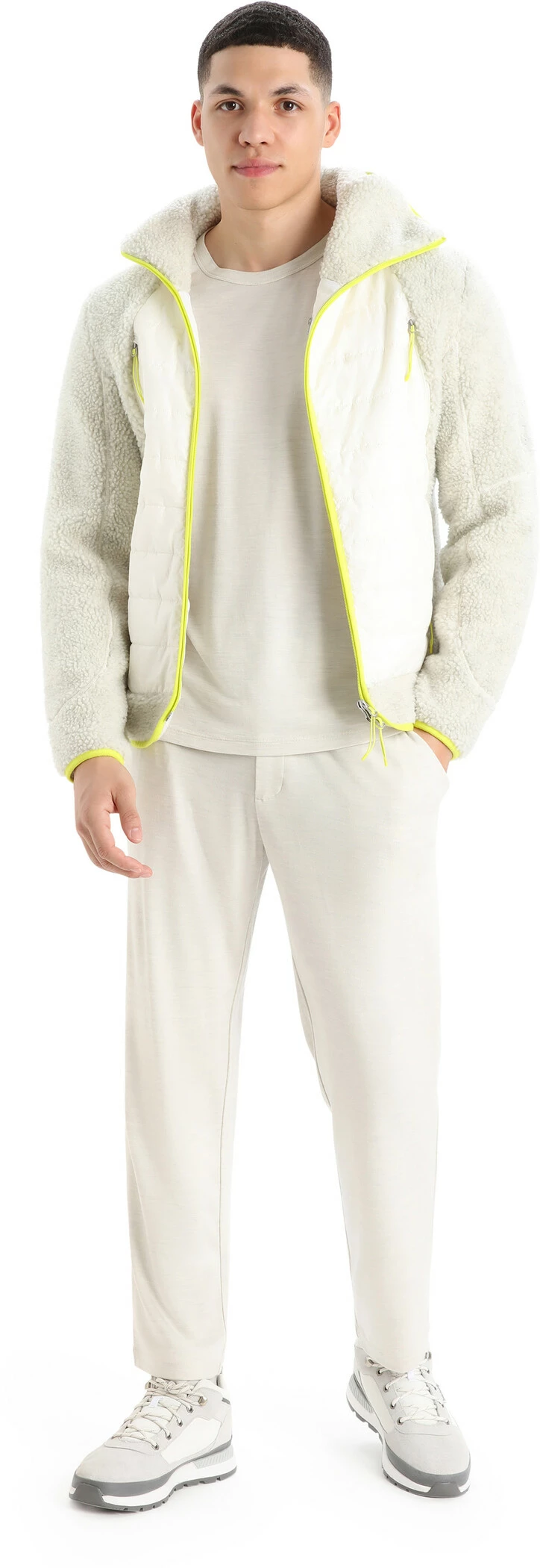 Icebreaker RealFleece Sherpa Sweat à Capuche à manches longues avec fermeture éclair Homme, gris/blanc(ecru heather/snow/shine)